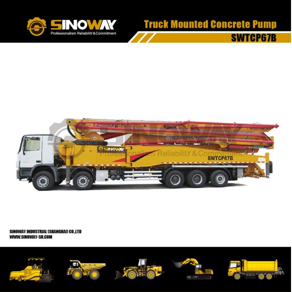 The concrete pump truck SWCTP67B is the lightweight series of concrete pump. The concrete pump truck is ahead of the domestic industry by its excellent quality of “safety / reliability / green & advances”, and synchronized with the international advanced technology. It is the pump truck with the longest boom frame & "X" type legs in the world.